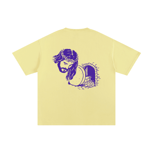 Bold and unashamed, this yellow tee radiates the truth of resurrection power. Featuring a vivid purple illustration of Jesus and the empty tomb, this shirt declares what darkness could never defeat — He rose, and we have victory. Wear it as a bright reminder that the grave has been conquered and His light still shines.